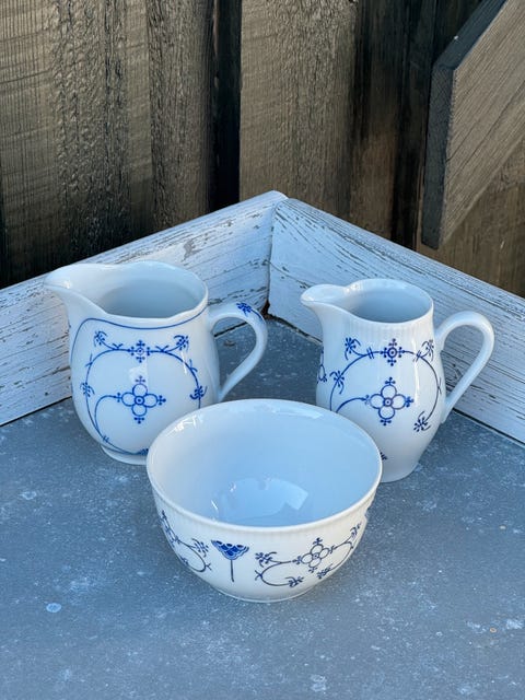 Royal Copenhagen porcelæn. blå mega musselmalet stor kande. Nr. 444. 1,7liter.