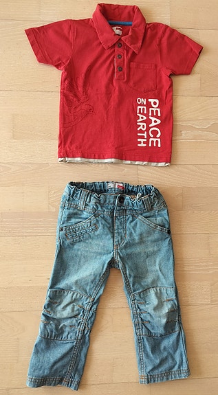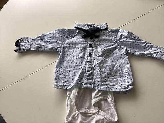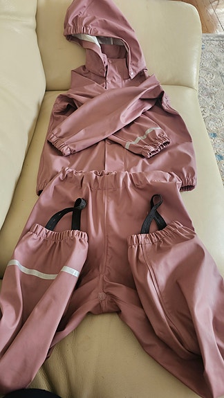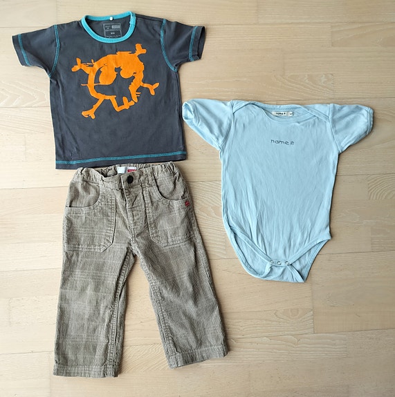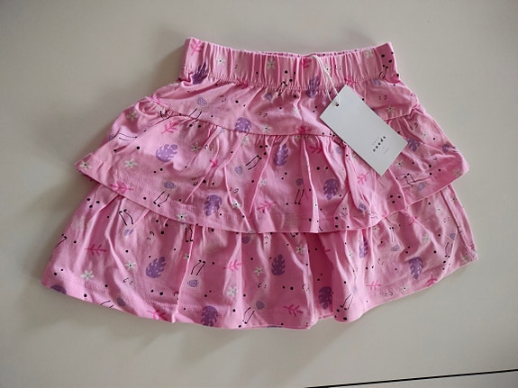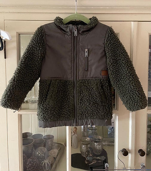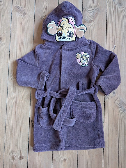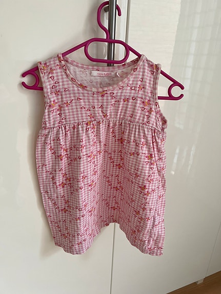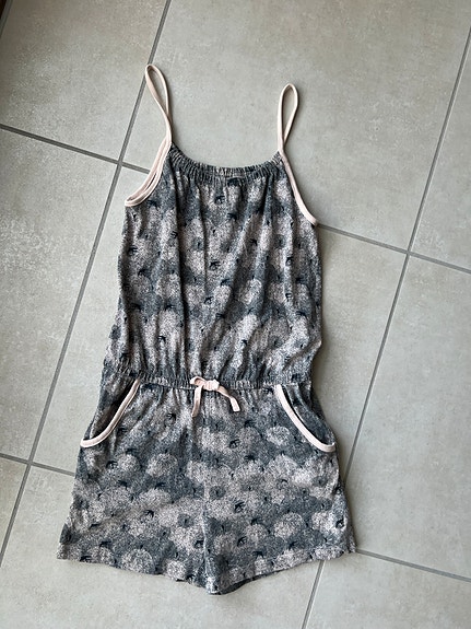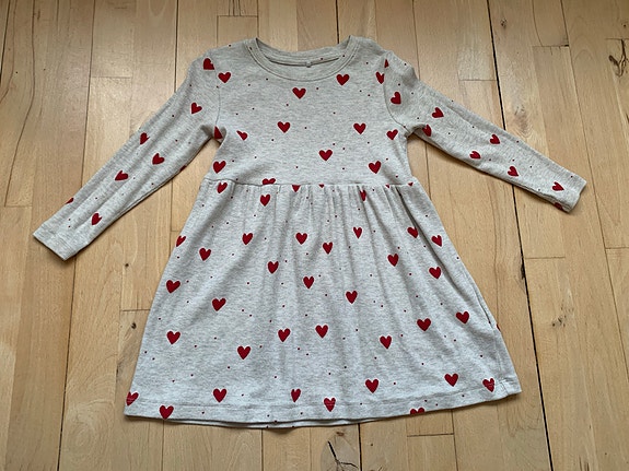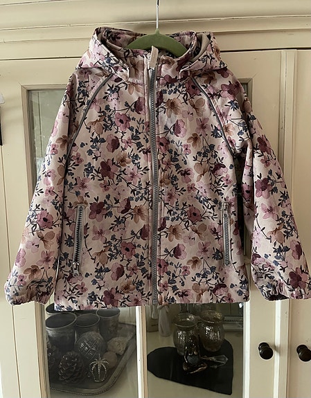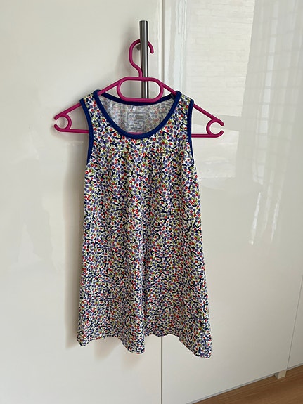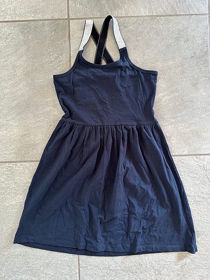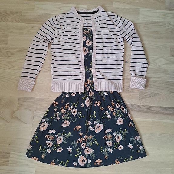 Mørkeblå kjole med rosa blomster fra Name It med stribet cardigan i samme farver