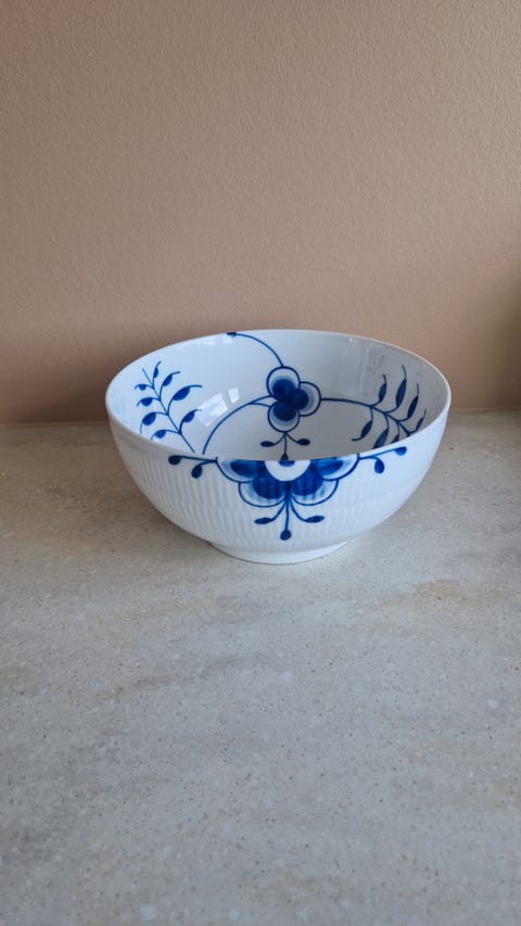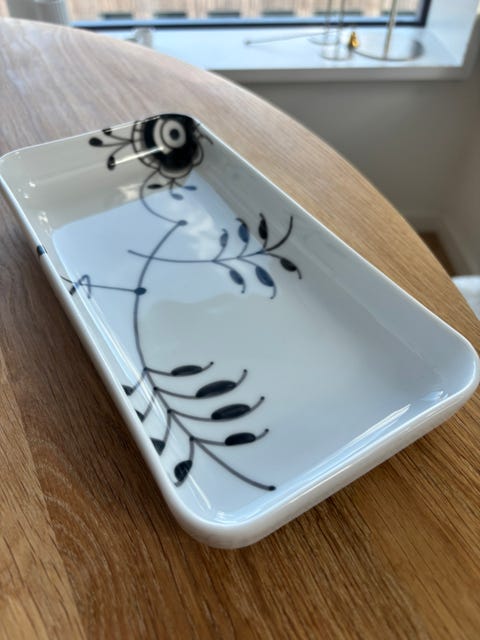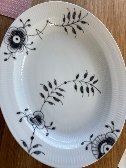 Rolyal Copenhagen blå mega musselmalet aflangt fad. Nr. 378. Måler 36cm langt