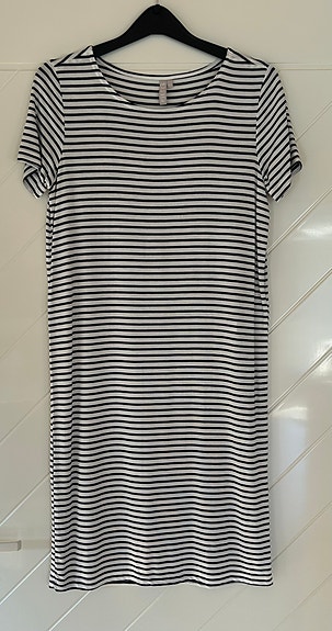 Fin lyseblå/hvidstribet mrk. Tommy Hilfiger sommerkjole med foer. Hel og pæn