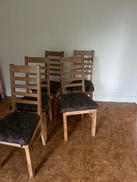 6 stk, spisebordsstole i fyrretræ