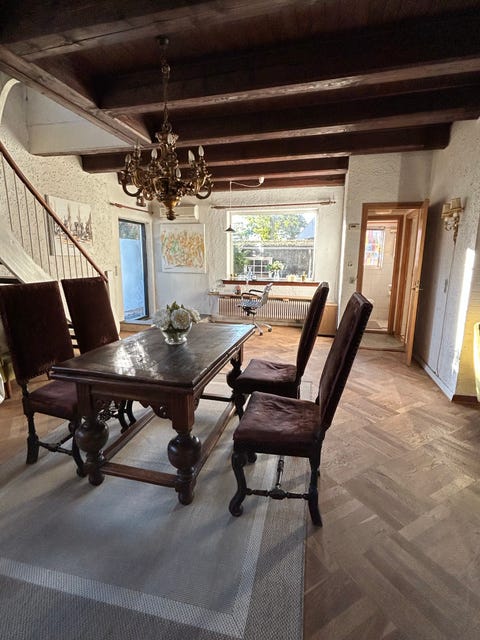 Ældre massivt bord med kongestole
