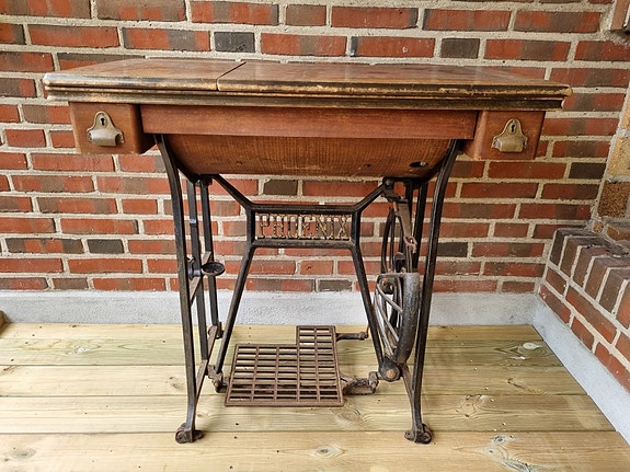 Gammel symaskine med træfod