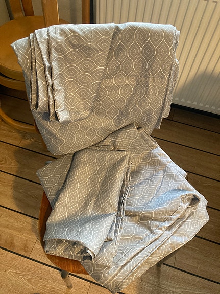 2 Sprit nye lysegrå foldegardiner.