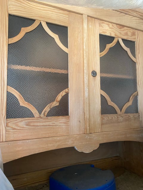 Gammel vitrineskab med glaslåger