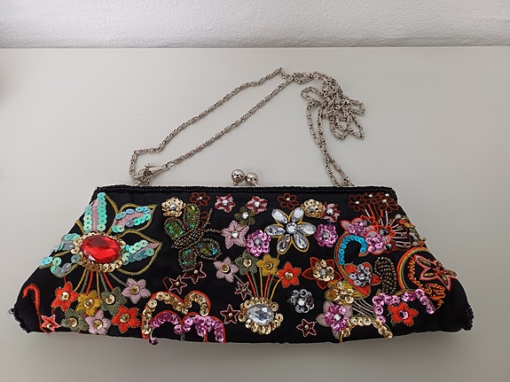 En clutch er en vigtig accessory til festtøj. Tjek DBA's 1.884 annonce(r) og se, om du kan finde den perfekte clutch. Små tasker til fest og aftenbrug har ofte en aftagelig strop. Du kan derfor vælge, om du vil bære tasken som en skuldertaske eller holde den i hånden uden stroppen. Et helt nyt sæt med tøj, sko og taske kan være en dyrt – tjek derfor, om du kan finde en flot clutch brugt.