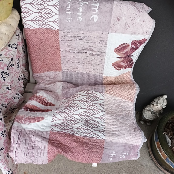 Lyserødt kludetæppe