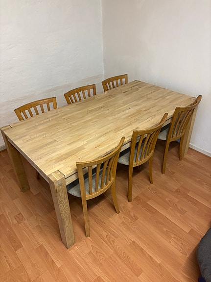 Egetræ spisebord & stole