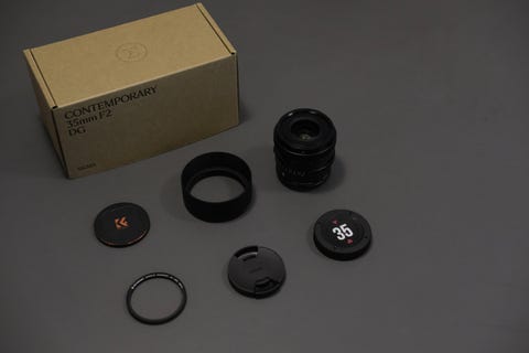 Objektiv samt blitz.