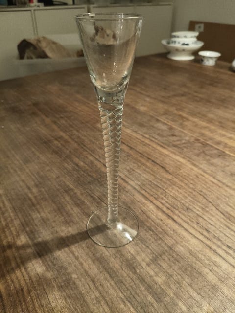 Antik glas med snoet stilk