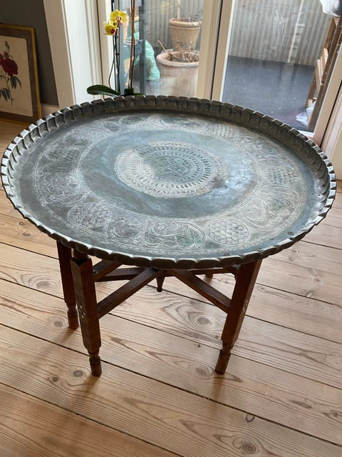 Rundt bord i metal og træ