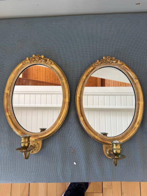 Ovalt spejl med gylden ramme