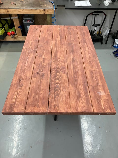 Hjemmebygget plankebord med ben