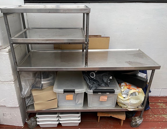 Mobil container med trappetrin og hylder