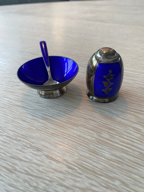 Saltkar, Emalje/Pletsølv