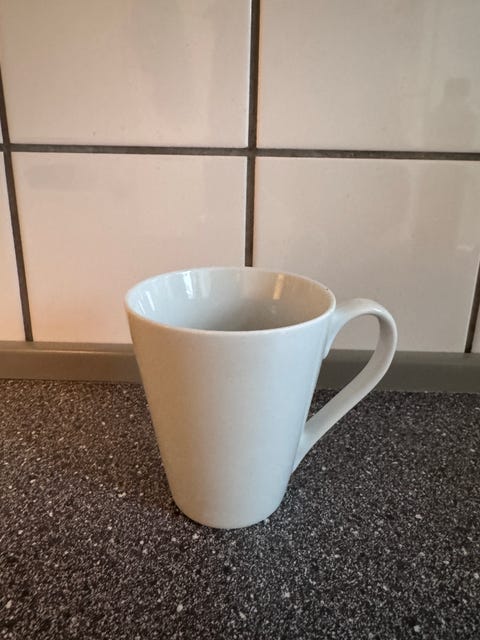 Royal Copenhagen, brun Iris, kaffekop med underkop hvid med blomst og guldkant