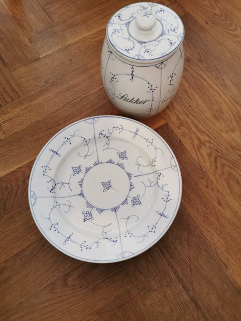 Blåkant Høj krukke med låg