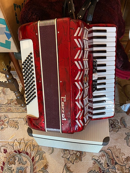 Flot rød harmonika med kuffert