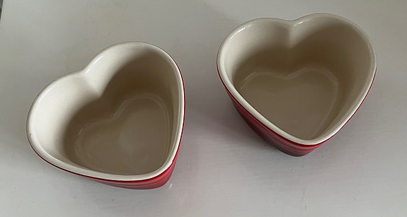 3 hjerteskåle fra Le Creuset