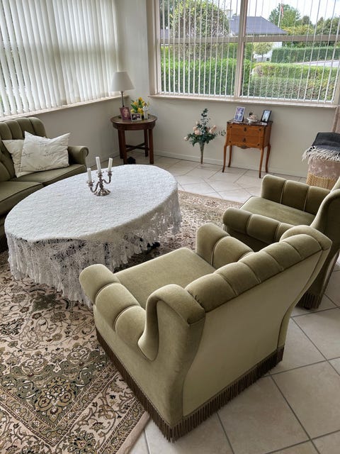 Smukkeste sofa sæt med butlerbord 🤎💚❤️