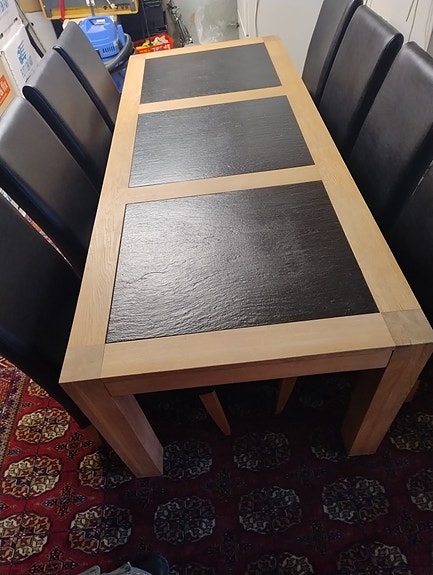 Spisebord egetræ med skiffer