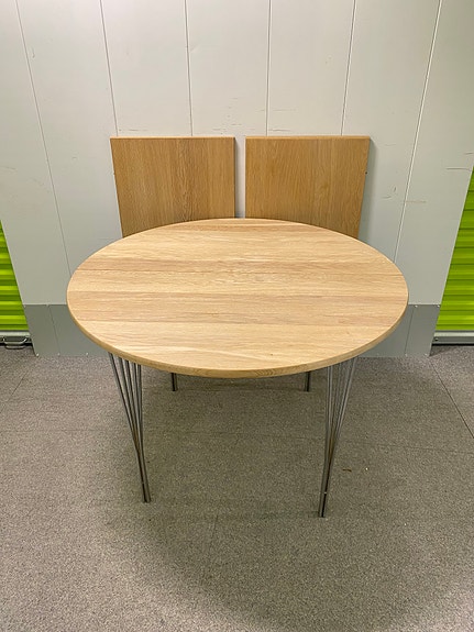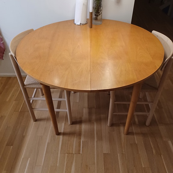 Rundt bord i egetræ med plader