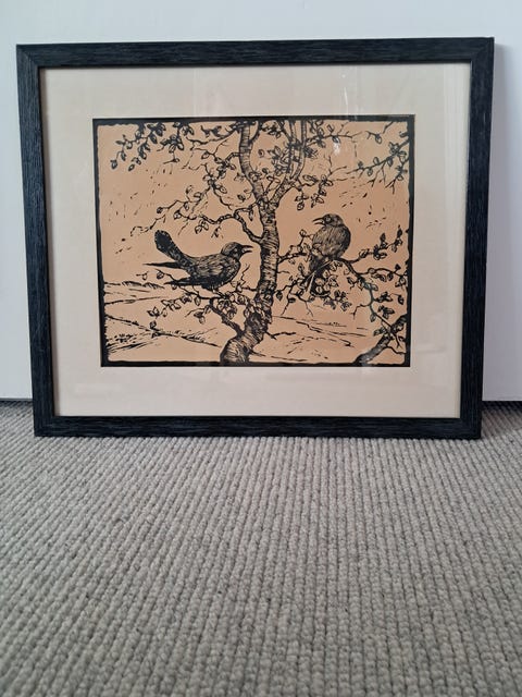 Træsnit - To fugle