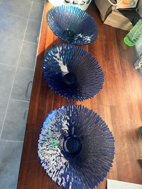 Blå glas skåle 3 stk
