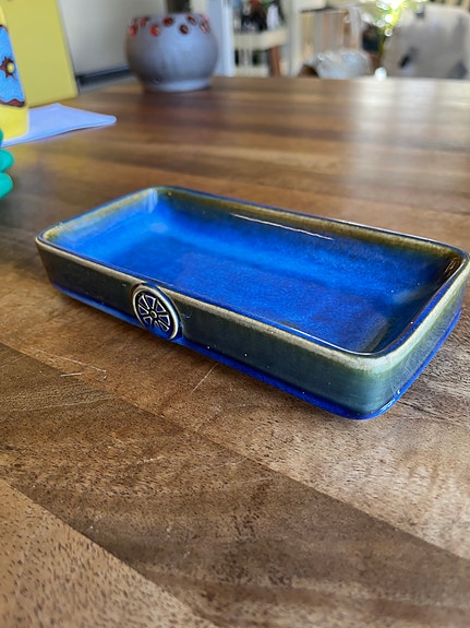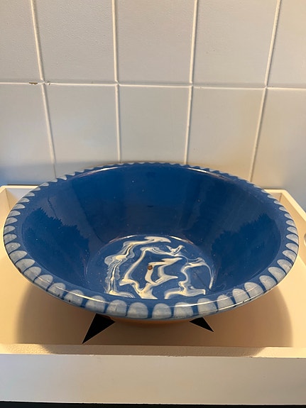 Keramik skål med trælåg blå