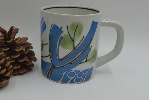 Royal Copenhagen, stort fajance årskrus fra 1968. Dekorationsnummer 828/3135.