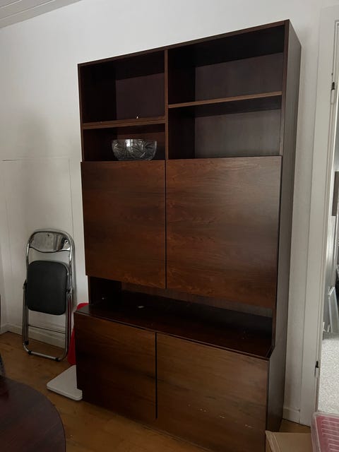 Vitrineskab med skabe og skuffer