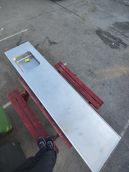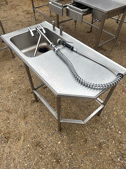 Stål arbejdsbord med integreret vask