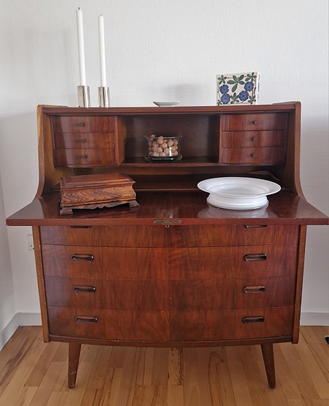 møbel med skuffe og hylde.
