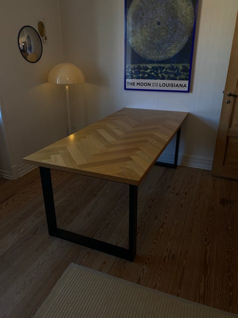 Spisebord i træ med stålben.