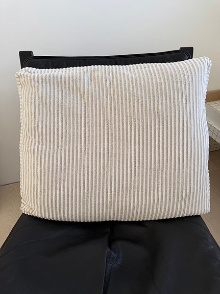 RØD PUDE MED RÅHVIDE STRIBER