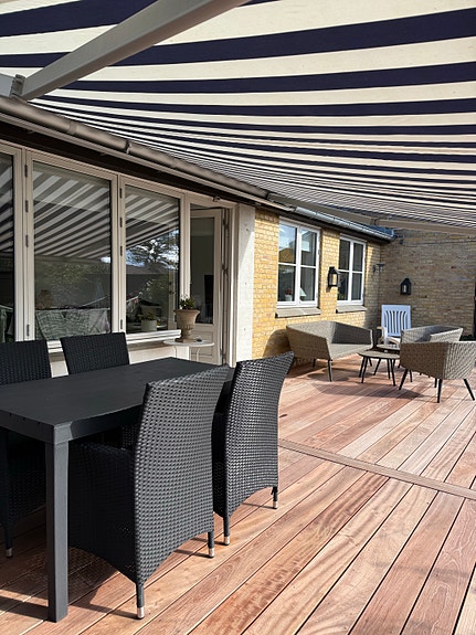 En markise med motor giver skygge og et look til gården eller altanen