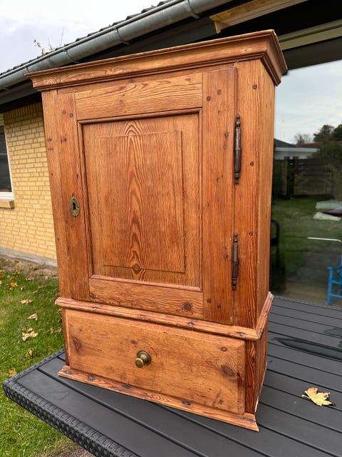 Antikt Fyrretræ Vægskab med Skuffer