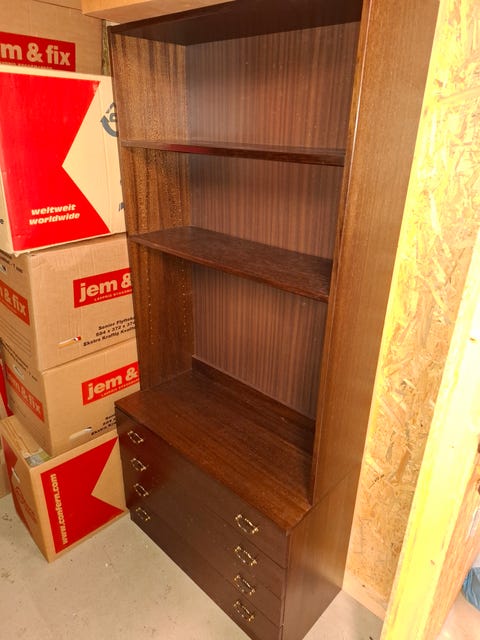 Træreol med skuffer