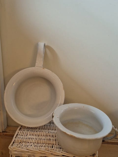 Hvidt emalje natpotte-sæt