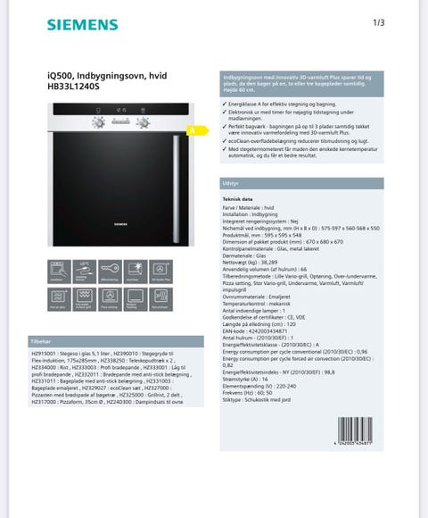 Siemens IQ700 indbygningsovn