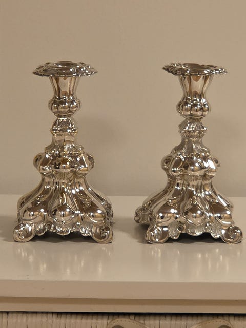 2 Sølvlysestager I Rokokostil.