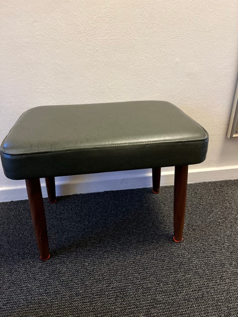 Skammel grønt læderbetrukket