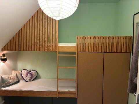 Uåbnet køjeseng med rutsjebane