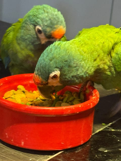 Nymfeparakiter med bur