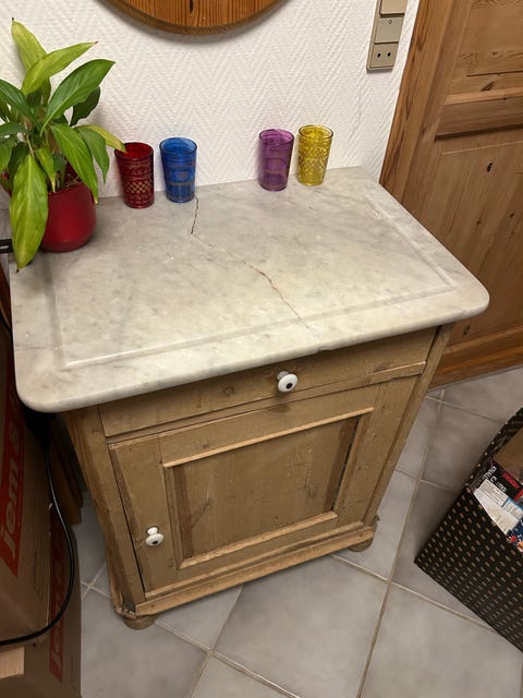Marmor bordplade med træskab