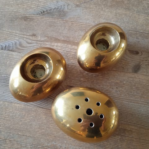 Messing lysestager og pynte.