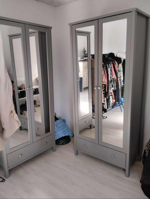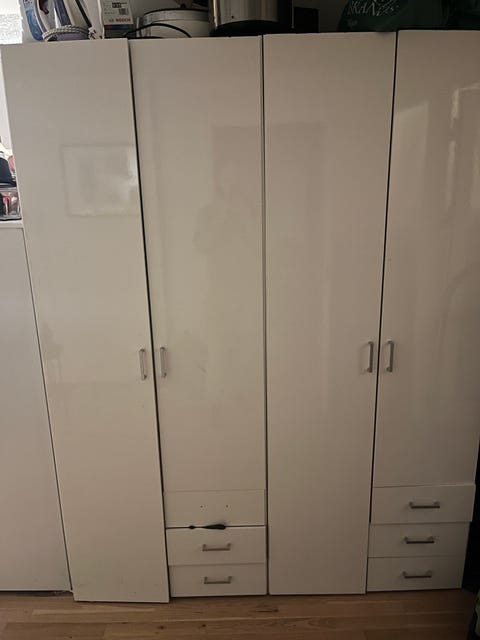 GIVES VÆK. Skænk i teak, hvidmalet.