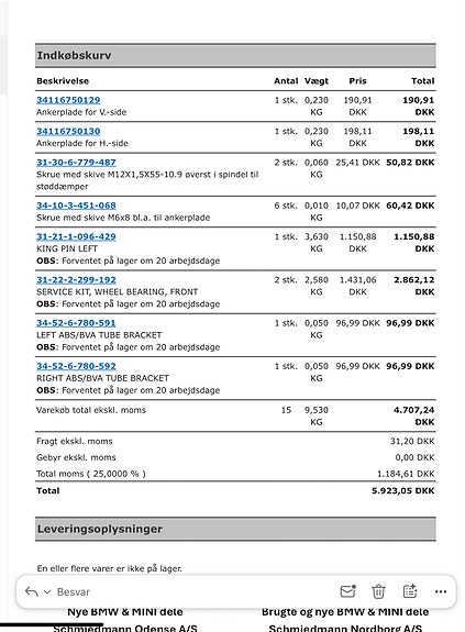 Andre reservedele, andet bilmærke