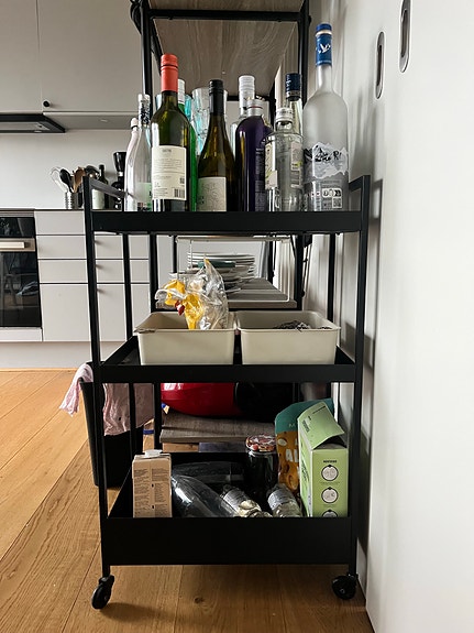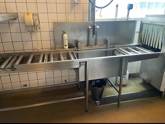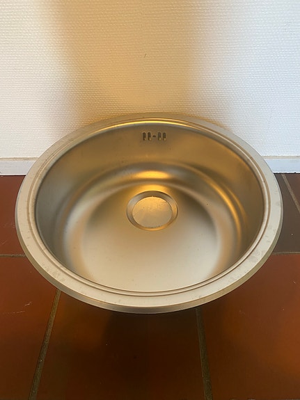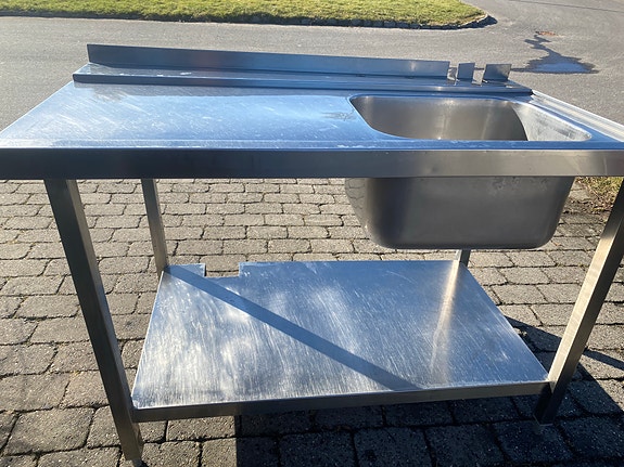 Rustfri bord med stor vask og hylde