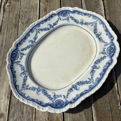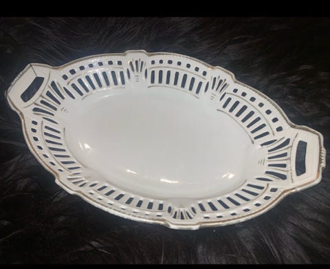 Sjældent ovalt Royal Copenhagen serveringsfad i Prinsesse med guld dekorationer.
